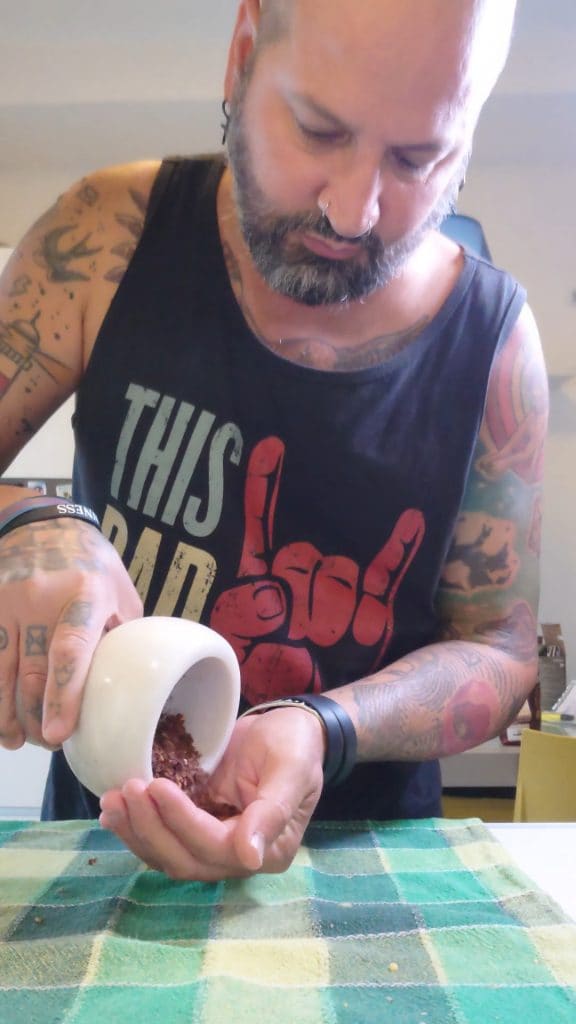 Puedes desmenuzar las galletas de cacao simplemente con las manos o, para un resultado más fino y uniforme, ponerlas en una bolsa para alimentos y aplastarlas con un rodillo, o puedes usar un mortero.