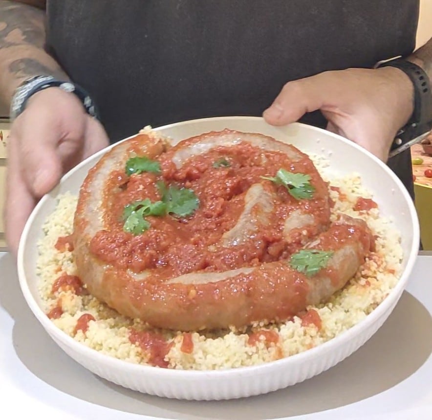 La salchicha con salsa es un plato sencillo y sabroso, ideal para el almuerzo del domingo cuando se tiene ganas de comer algo bueno dedicando muy poco tiempo en la cocina. Es un condimento típicamente italiano muy sabroso y gustoso ideal para darnos algún que otro placer haciendo una excepción a la regla. Con este condimento podréis utilizar cualquier tipo de salchicha, de cualquier región, incluso muy especiadas. La salsa será perfecta para condimentar cualquier tipo de pasta, polenta, pan fresco o tostado o simplemente cuscús como hice yo en esta ocasión.