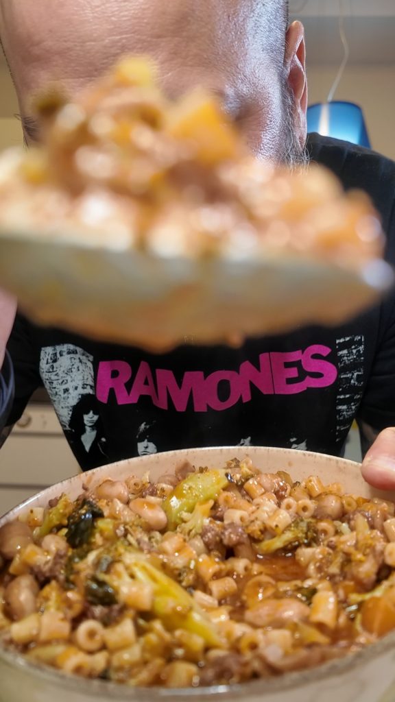 Los tiempos de cocción podrían alargarse hasta 60-70 minutos, así que siempre prueba las judías antes de añadir el brócoli y la pasta.