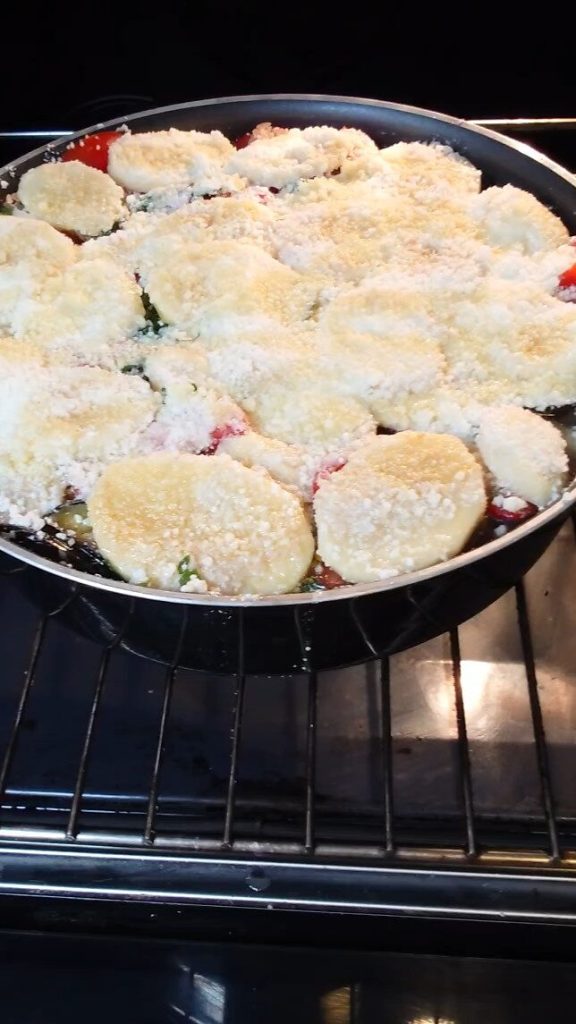 Alternativamente, muchos consideran que la tiella es aún más sabrosa al día siguiente: puedes cocerla completamente, dejarla enfriar, guardarla en la nevera y luego calentarla suavemente en el horno antes de servirla.