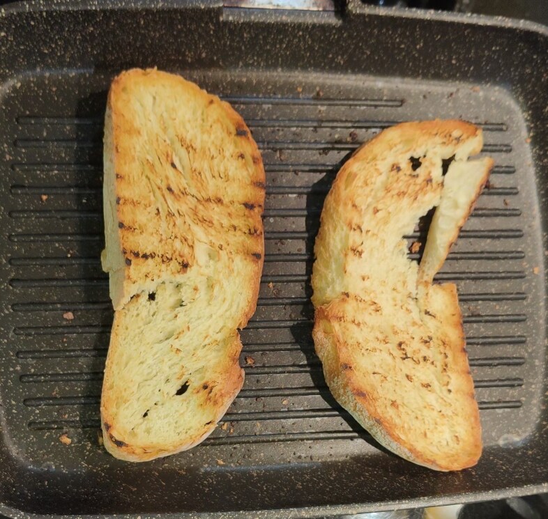 Mientras tanto, he tostado rebanadas de pan que he utilizado para acompañar el zaalouk marroquí.
