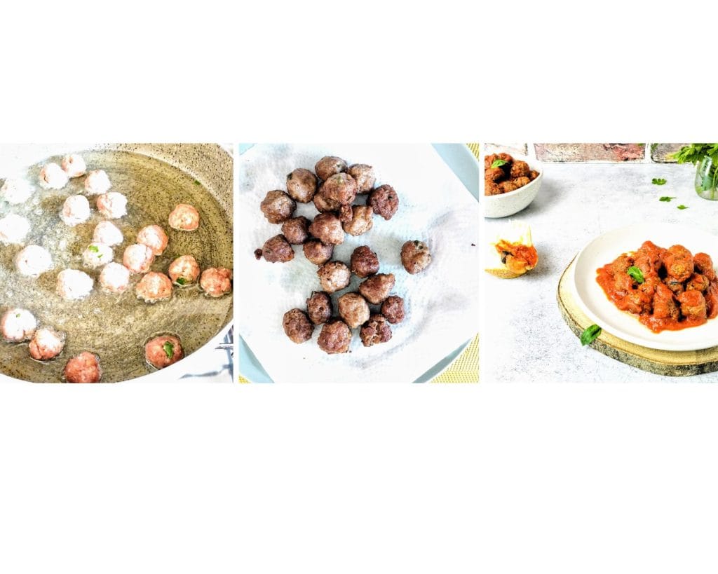 Cada bocado de estos bocaditos de carne es un descubrimiento: la crujiente capa dorada del exterior encierra un corazón suave y sabroso, hecho de carne seleccionada, hierbas aromáticas y especias que se fusionan en una explosión de sabor. Todo ello se envuelve en una salsa de tomate rica, densa y fragante. Es este contraste perfecto entre el dorado frito y la salsa aterciopelada lo que hace que estas albóndigas sean tan irresistibles.