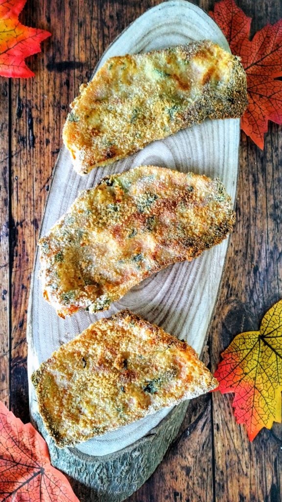 Estas chuletas son ideales si buscas una alternativa ligera a las clásicas chuletas fritas. Cocidas al horno, son definitivamente menos pesadas, pero igual de deliciosas. Probablemente se convertirán en uno de esos platos que cocinarás a menudo, porque son versátiles y gustan a todos. Excelentes como segundo plato vegetariano, pero también como un aperitivo delicioso, puedes acompañarlas con una simple ensalada o con verduras a la parrilla.