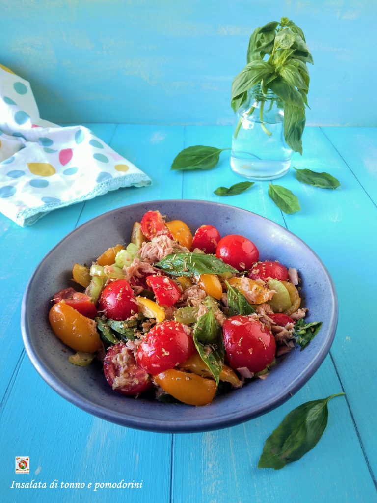 Realmente deliciosa, fresca y colorida, la ensalada de atún y tomates cherry es una excelente receta veraniega. Yo la propongo también como plato único, para acompañar con unas buenas rebanadas de pan tostado o unos picatostes. Esta es, de hecho, una receta simple, pero muy sustanciosa y nutritiva.