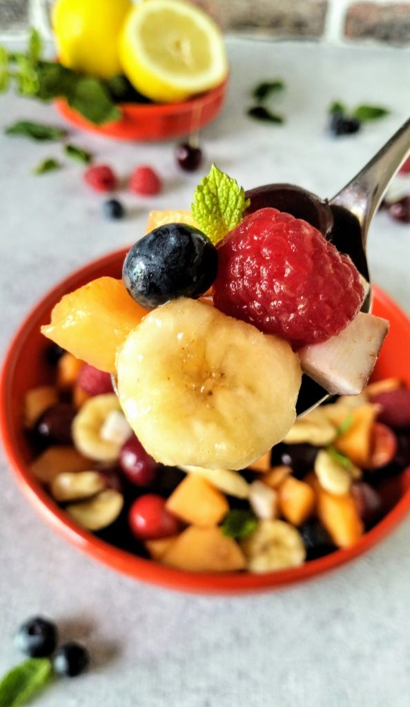 Al momento de servir, decoren la macedonia con las hojitas de menta.
