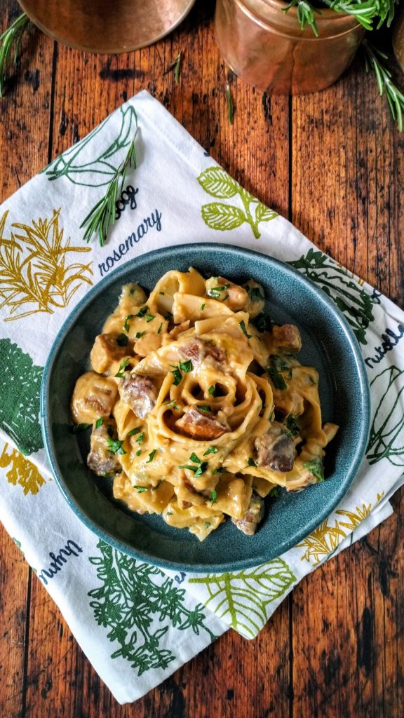 Las pappardelle son perfectas porque retienen bien la crema, pero también puedes utilizar tagliatelle, fettuccine o pasta corta como rigatoni o mezze maniche.