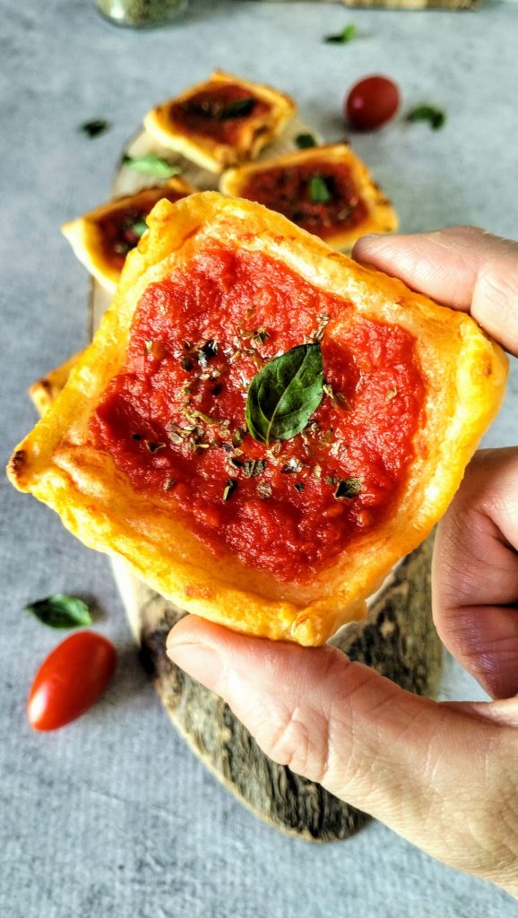 El secreto está en la calidad de los ingredientes. Usa un buen hojaldre y una pulpa de tomate igualmente buena. Un chorrito de aceite de oliva virgen extra y una pizca de orégano fresco y hojas de albahaca completan el cuadro, dando un toque de frescura y aroma irresistibles.