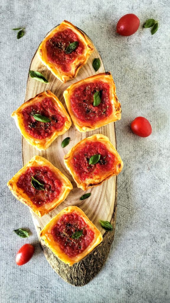 Lo que hace especiales las pizzitas de hojaldre al tomate es su sencillez. No necesitas ingredientes complicados ni pasos elaborados. El hojaldre, crujiente y quebradizo, se combina perfectamente con la dulzura del tomate y el aroma intenso del orégano, creando un equilibrio de sabores que es simplemente perfecto.