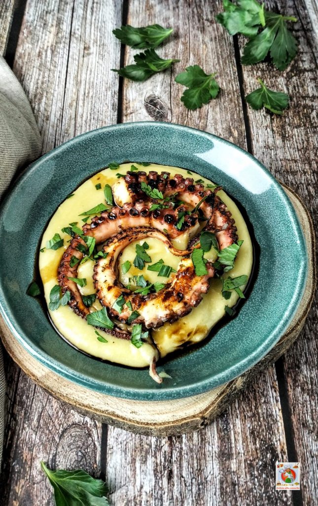 El pulpo con crema de patatas y balsámico es un segundo plato delicioso, que reinventa la clásica combinación de pulpo y patatas. ¡Una reinterpretación con un toque gourmet!