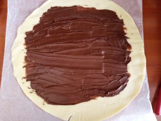 Unta en cada disco dos cucharadas de crema de avellanas. Deja los bordes libres.