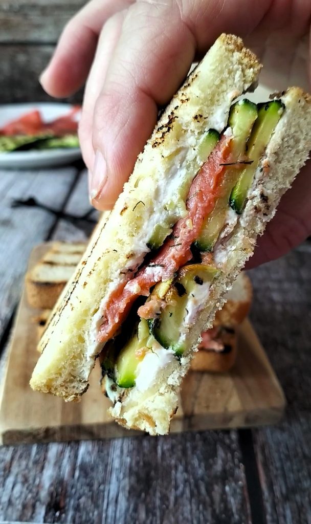 Si estáis buscando un plato fresco y ligero, el sándwich con calabacines a la parrilla y salmón es la elección perfecta.