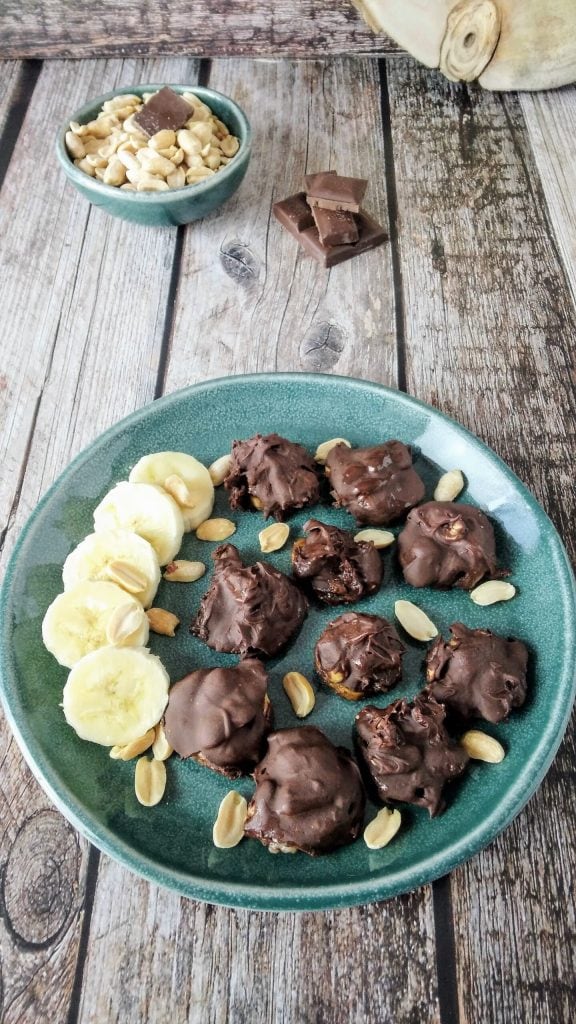 Amantes de los snacks, tengo para vosotros el tentempié perfecto con plátano, cacahuetes y chocolate.