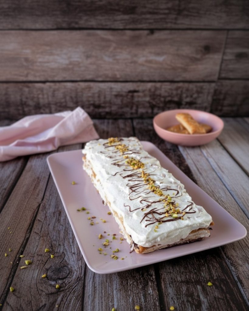 Deberás dividir las láminas a la mitad y rellenarlas con el chocolate y la nata. Luego, formar con ellas dos capas y cubrir ambas con la nata y decorar con el chocolate. Y voilà, la tarta está lista. ¡Fácil, rápida y especial!