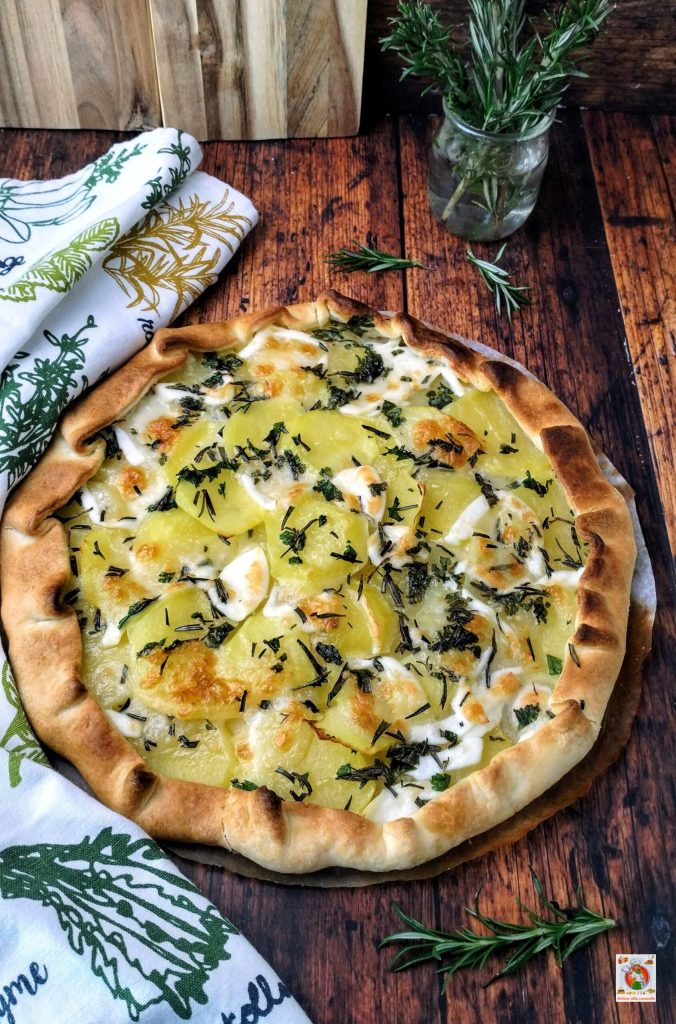 El relleno está compuesto por patatas cortadas en rodajas finas, mozzarella fundente, romero y perejil. Con estos sencillos ingredientes, prepararéis una tarta salada perfecta, sabrosa y crujiente!