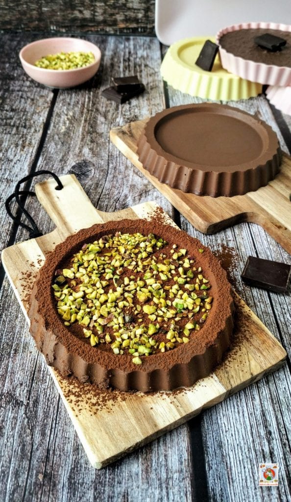 -Puedes disfrutar de las tartitas tanto solas como decoradas (con cacao amargo, con granillo de avellanas o de pistachos o de almendras, con virutas de chocolate).