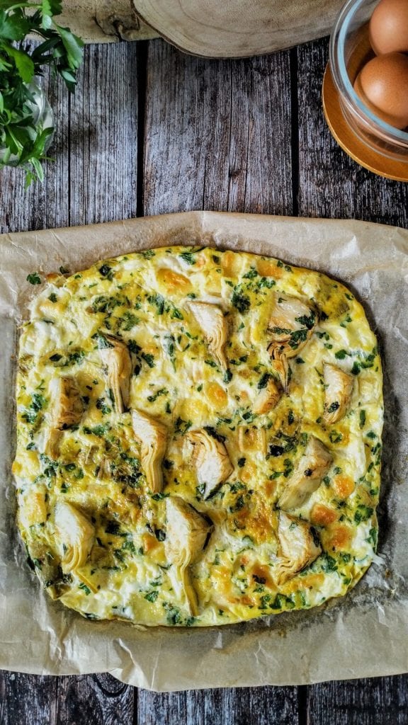Ingredientes para la Tortilla de alcachofas y provola al horno