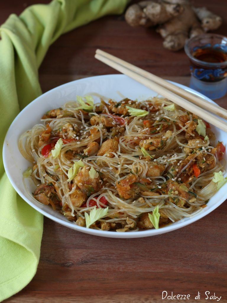 Los fideos de vidrio con verduras y pescado son un plato rico en sabor y muy colorido, perfecto para quienes aman la cocina asiática y quieren intentar reproducirla en casa. Se trata de un formato de pasta en forma de espaguetis, pero hechos de agua y almidón. Son muy prácticos porque no necesitan una cocción propiamente dicha, basta con poner estos glass noodles en un bol con agua hirviendo durante unos minutos y están listos. Cocidos se parecen al vidrio, de ahí su nombre. Para un buen resultado es recomendable usar algunos condimentos asiáticos como la pasta de curry, la salsa de soja y la salsa teriyaki, pero si no los encuentras, paciencia, el sabor general sigue siendo muy bueno. Ahora veamos juntos cómo se preparan estos fideos de vidrio con verduras y pescado.
