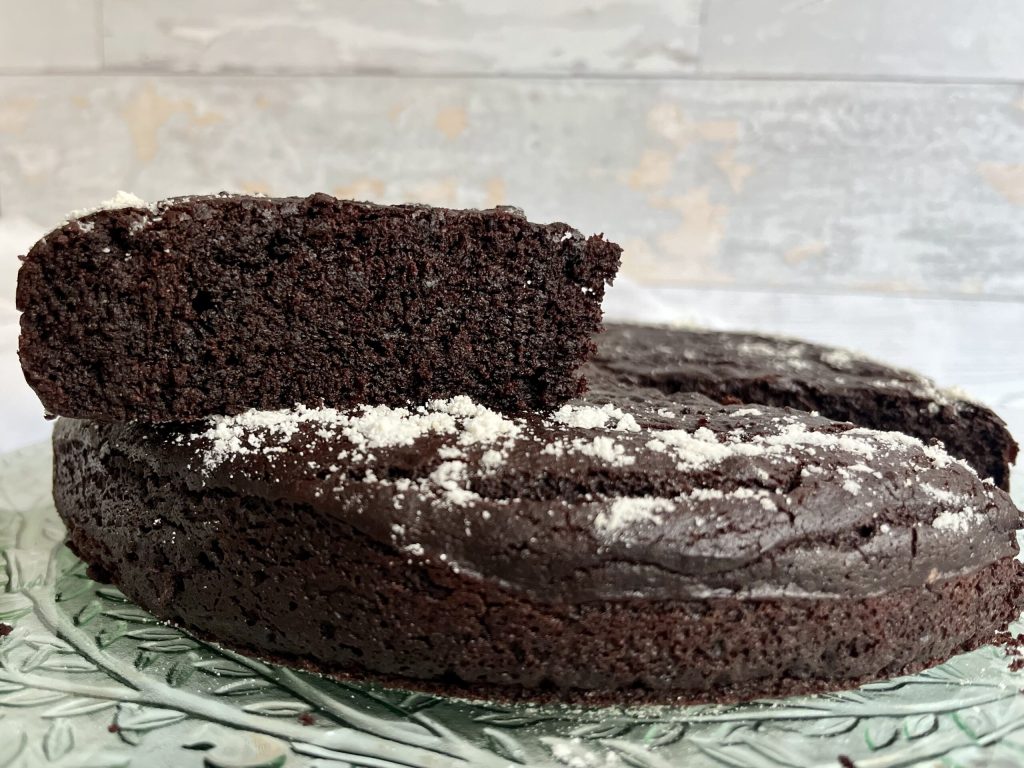 La tarta de chocolate «sin» es sin gluten, lactosa, mantequilla y huevos, ¡pero es muy muy buena, suave y chocolatosa!