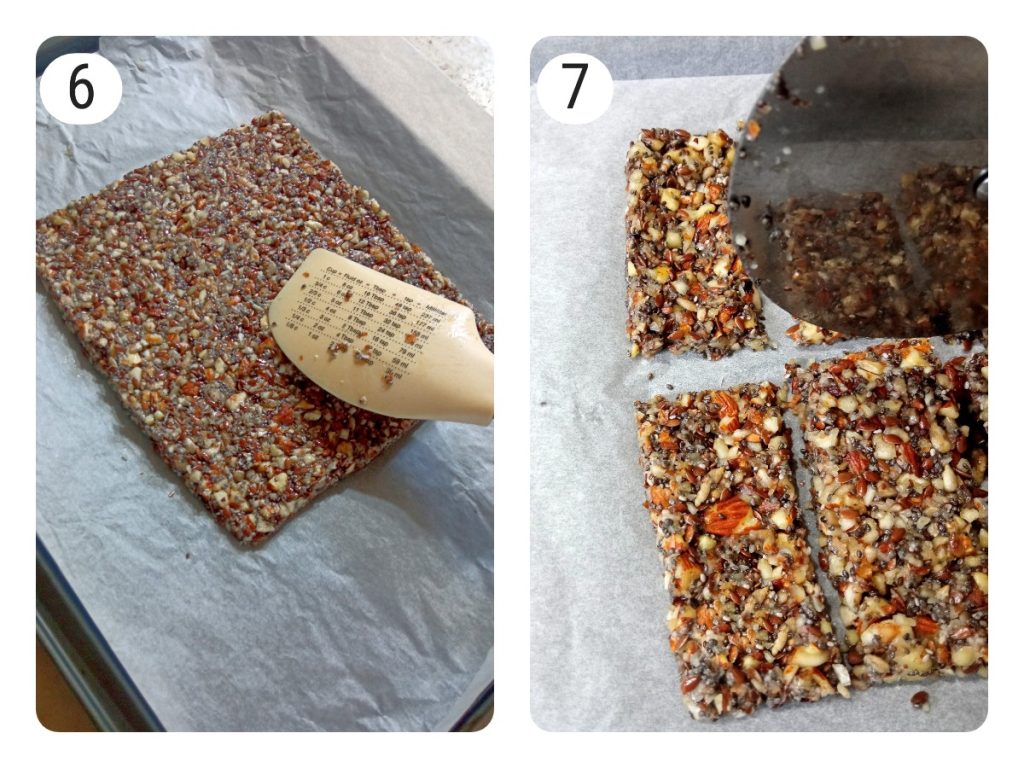 Precalienta el horno a 190°C y hornea durante unos 15 minutos, o hasta que las barritas estén doradas y compactas.