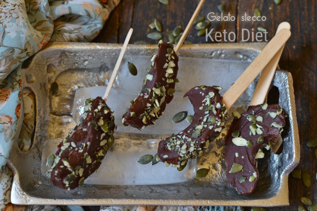 Llamarlo helado se puede: es refrescante y riquísimo para el verano, muy rápido de hacer, súper delicioso y apetecible. Estos mini polos gustan de verdad a todo el mundo. Además, también pueden llamarse helados cetogénicos, porque encajan por completo con la fórmula K-ratio. Precisamente, he preparado este helado en palito como tentempié para la dieta keto, pero gustaron tanto que al instante fueron apreciados también por quienes no sabían nada de la dieta cetogénica. Naturalmente los probé en el momento, pero pude incluirlos en el menú de la dieta cetogénica, en primer lugar porque el cálculo del k-ratio de la receta completa me dio como resultado 1, por lo tanto perfecto para ser considerada receta cetogénica, y en segundo lugar porque son sabrosos, sencillos, rápidos, bajos en carbohidratos (solo 2,6 g de carbohidratos por polo). La regla del K-ratio es uno de los temas del curso de «nutrición cetogénica» que estoy terminando con el Dr. Roberto Uliano.