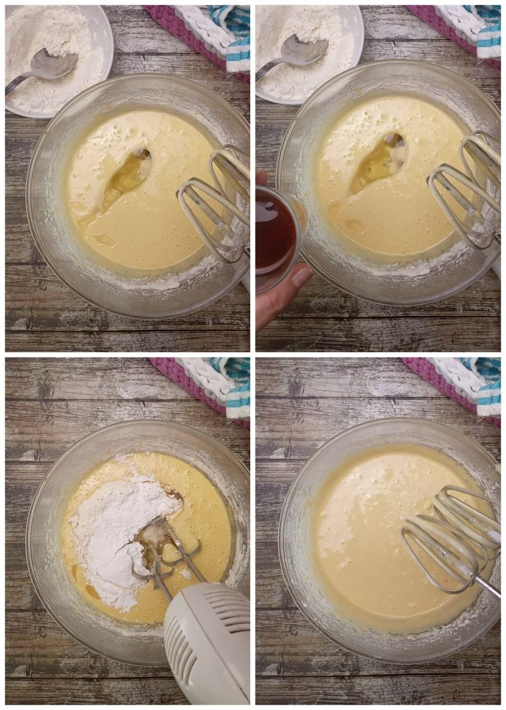 Luego añade 4 cucharadas de harina y sigue mezclando con la batidora eléctrica.