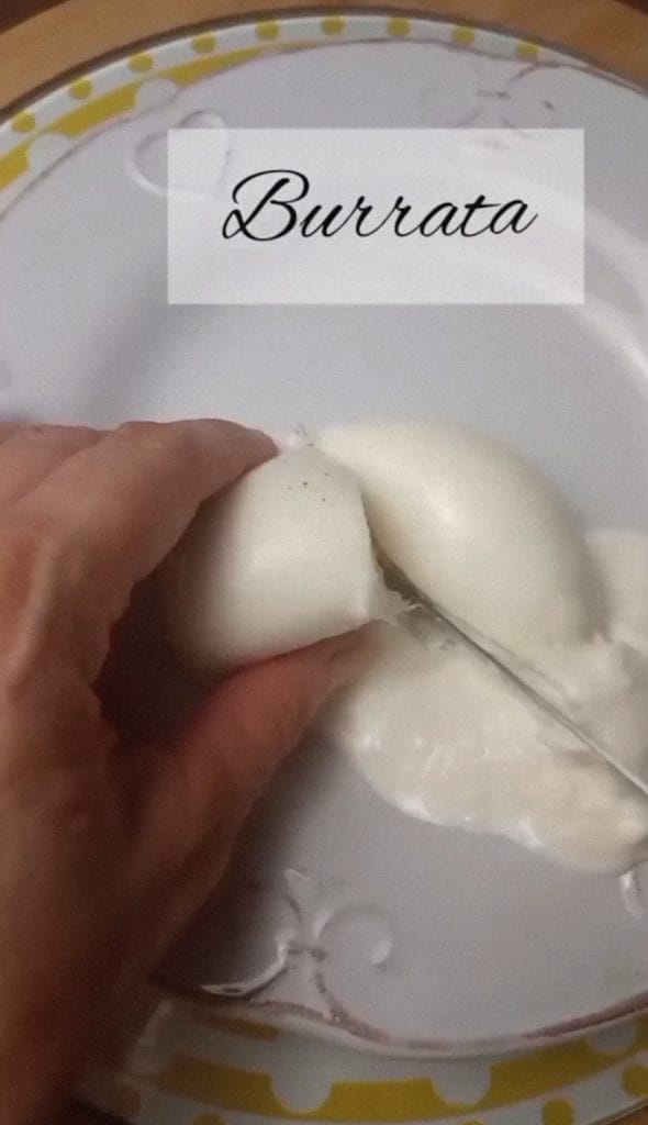 Untamos la burrata, añadiendo algunos trozos, sobre el pesto.