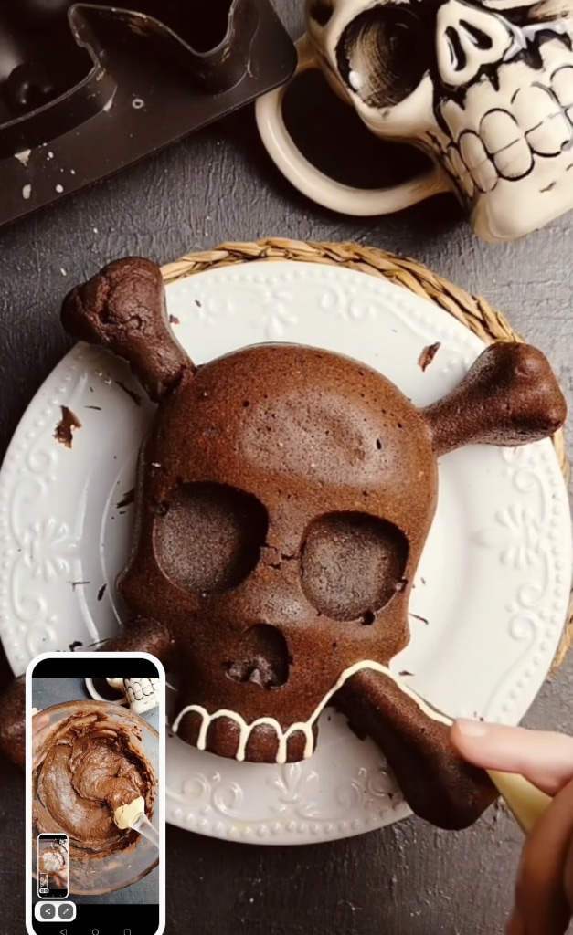 Calavera dulce, un dulce cráneo de cacao con ricotta muy esponjoso y una masa perfecta para llenar pequeños moldes de Halloween.