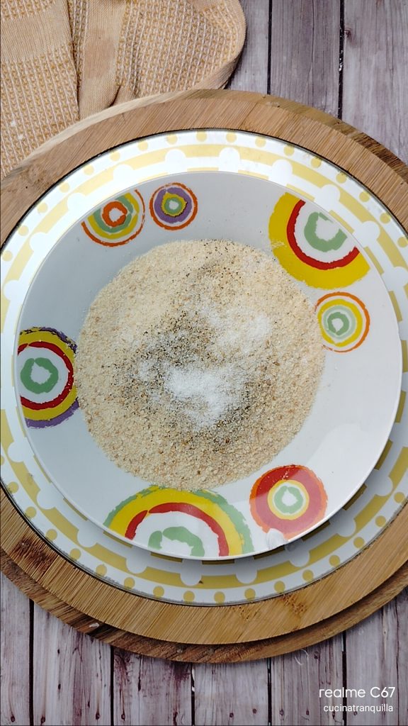 En un plato al pan rallado añade la pimienta, la sal fina y el ajo.