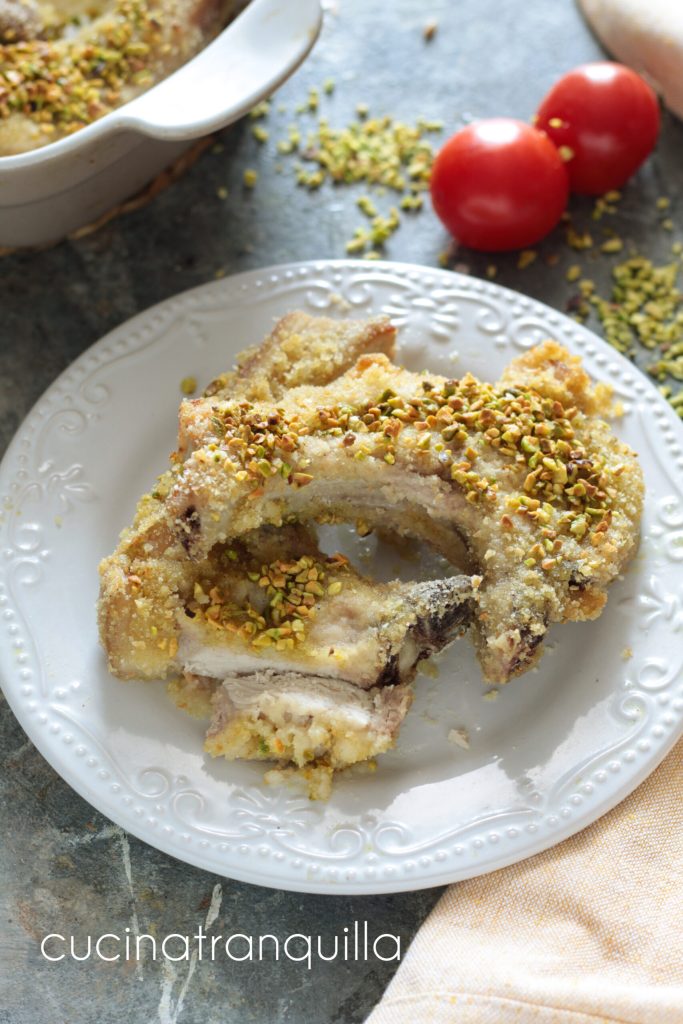 Hoy os presento un segundo plato deliciosísimo y jugosísimo, las chuletas de cochinillo al pistacho cocidas al horno. No soy muy fan de los platos de carne, lo admito, como bloguera de comida podría ser incluso una desventaja, y a menudo me pongo a buscar ideas diferentes para hacer estos platos más agradables. Esta vez se me ocurrió convertir estas chuletas de cochinillo en un plato casi gourmet, con la adición de pistacho en granillo. Últimamente alterno el uso de la freidora de aire con el horno, sobre todo para cocinar segundos platos y verduras, y esto me está intrigando mucho, también para entender los diferentes tiempos de cocción y organizarme en la cocina. Aquí abajo os dejo algunas ideas para segundos platos, mientras que al final de la receta, completa con pasos fotográficos, respondo a las preguntas más frecuentes.