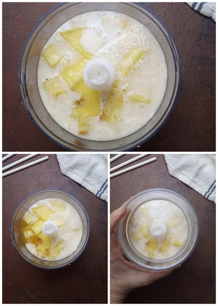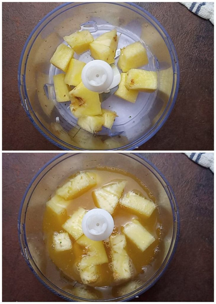 Tritura hasta que la piña en cubos se reduzca a puré.