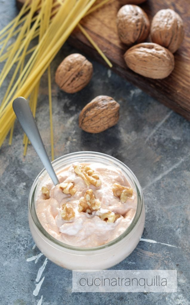 Crema salada con ricotta y nueces pero no lo llames pesto, porque utilizaremos una batidora y no el clásico mortero.