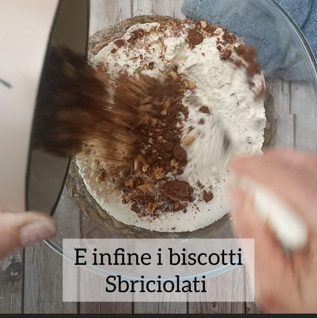 • Añade las galletas previamente desmenuzadas de forma gruesa.