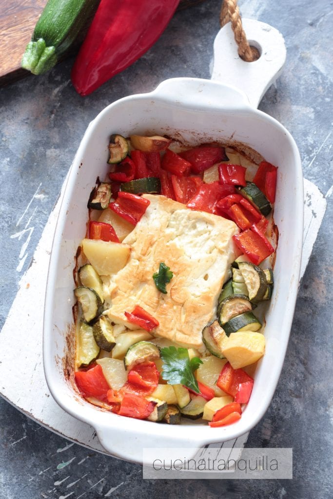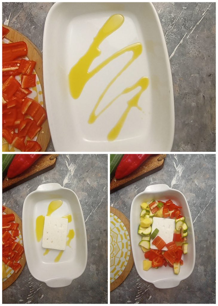 Feta al horno con verduras, una receta fácil y rápida de hacer, ideal también como segundo plato.