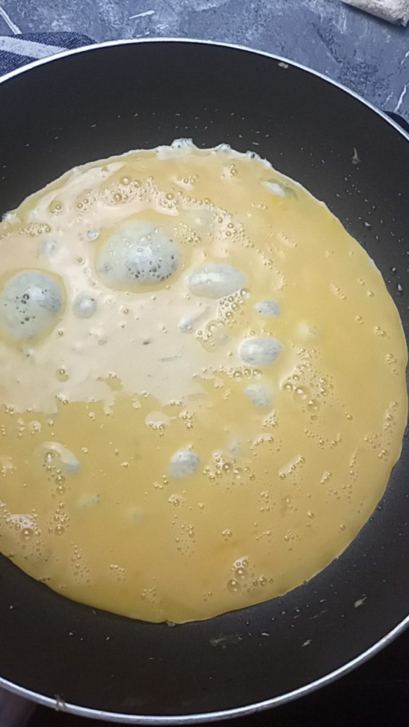 Cuando la sartén esté caliente, añadimos los huevos y dejamos que se cuajen ligeramente.
