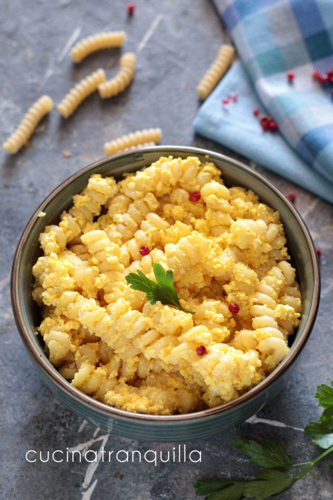 Fusilli bucati con crema de ricotta y azafrán, un primer plato sencillo, rápido y sabroso que se prepara durante el tiempo de cocción de la pasta. Una idea deliciosa y fácil de hacer que puedes enriquecer como prefieras. En tiempos en los que todos corren entre compromisos de trabajo y no solo, creo que recetas similares sean un cambio. Sin renunciar a un buen plato de pasta, os dejo mi idea que es una combinación perfecta entre sabor y ligereza. Aquí abajo os dejo otras ideas simples de primeros platos para realizar con la ricotta mientras que al final de la descripción completa de pasos fotográficos respondo a algunas de las preguntas más comunes.