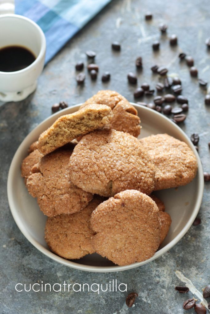 Galletas blandas al café sin lactosa, con leche de arroz, una nueva versión de una de mis recetas más leídas en la web. Este masa ya es uno de mis caballos de batalla, cuando necesito preparar un desayuno fácil y rápido para el día siguiente. De hecho, esta receta requiere una masa en bol muy suave pero no pegajosa y, a diferencia de las galletas de pasta frolla, no necesita reposar en el frigorífico. En esta receta uso el café soluble solo por una razón real. Durante el período de verano, de hecho, para hacer las varias recetas con café frío y relacionadas, necesitaba usar este ingrediente y esta nueva idea me hizo usar un poco más. Una de las muchas maneras de no tirar nada. Perfectas para mojar, las galletas blandas al café sin lactosa son ideales para el desayuno y aquí abajo os dejo algunas ideas más para preparar nuestros despertares matutinos con dulzura.