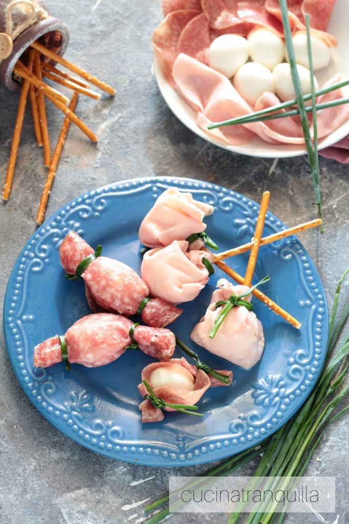 Lollipop de bolitas de mozzarella y embutidos, si estás buscando un entrante ligero, delicioso y simpático, sin cocción, aquí tienes una idea para enriquecer tu mesa.