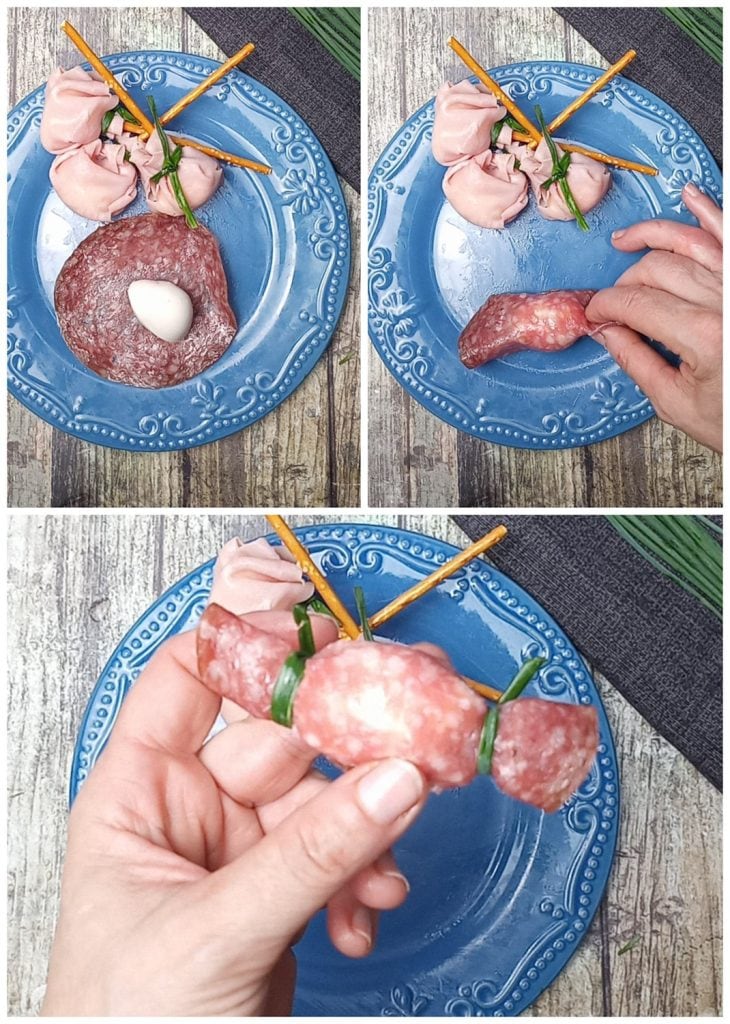 Para realizar los Lollipop de bolitas de mozzarella y embutidos, os muestro cómo hacerlos con el salami.