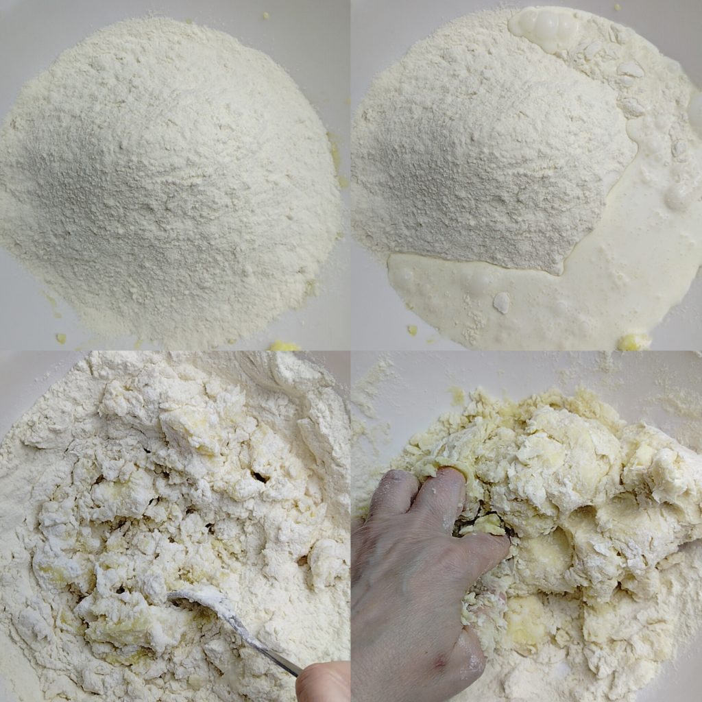 Sigue en el mismo bol incorporando la harina y la nata y continúa trabajando hasta que la harina absorba bien todos los líquidos.