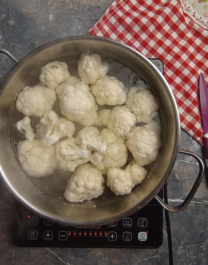 • Cocina el coliflor en abundante agua salada durante 10-12 minutos.