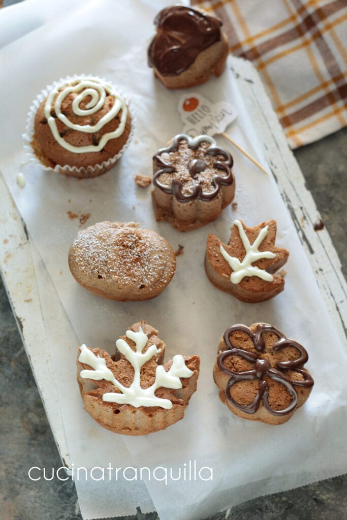 Para decorar los mini muffins con harina de castañas, puedes usar chocolate blanco o negro derretido en el microondas o al baño maría, sin exagerar en las cantidades, o puedes optar por azúcar glas delicioso e irresistible.