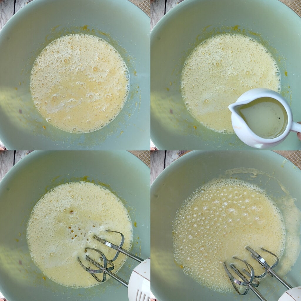 Para hacer los Mini muffins con harina de castañas, primero, en un bol grande, mezcla los huevos con el azúcar durante un par de minutos. La primera mezcla debe quedar un poco más espumosa y clara.