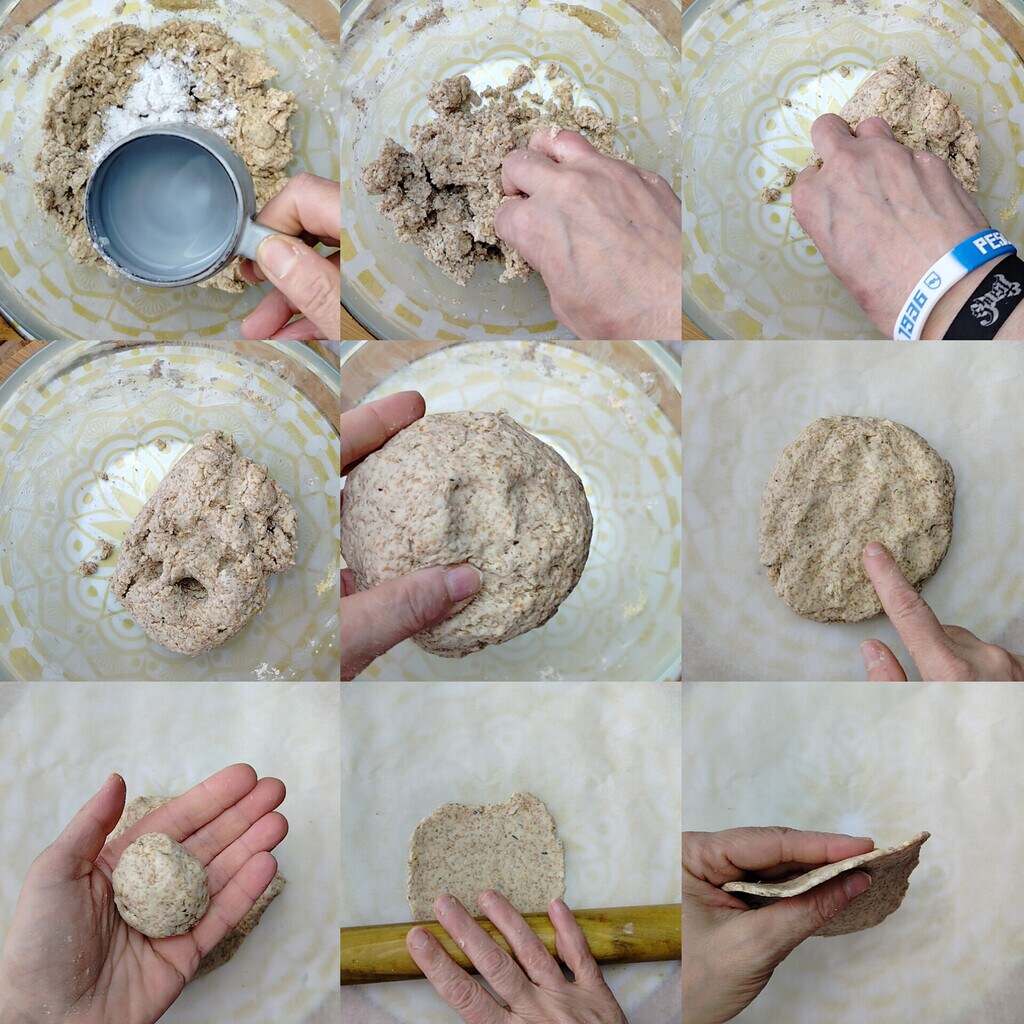 Une el agua y sigue amasando a mano hasta obtener un bollo liso y homogéneo.