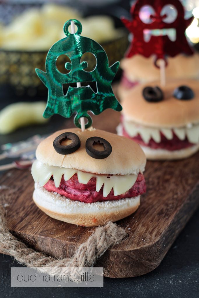 Monstruo burger de Halloween, bocadillos monstruosos vegetarianos, directamente desde mi cocina, ideales para grandes y pequeños. ¡Facilísimos de hacer!