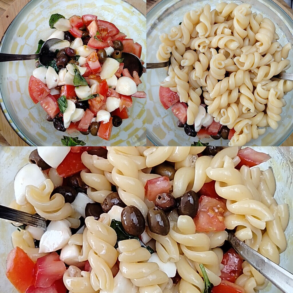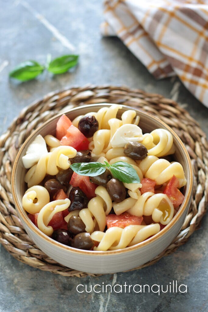 Pasta fría a la mediterránea con aceitunas Taggiasca