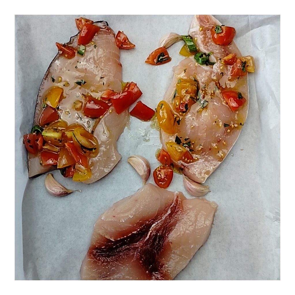 Pez espada a la mediterránea con hierbas aromáticas, una receta ligera, sencilla y rapidísima, perfecta para hacer tanto con pez espada fresco como descongelado. Para las hierbas aromáticas puedes comprar tranquilamente la mezcla ya preparada en el comercio y, si quieres, puedes sustituir el cebollino por el seco, aunque mi consejo, en este tipo de recetas es utilizar todos los productos frescos, para un resultado final mejor. Mi filete de pez espada era bastante grande como para comer tranquilamente dos personas, para la cantidad ajusta tú, incluso consultando con tu vendedor de confianza. Aquí abajo te dejo otras ideas para realizar con el pez espada, mientras que después de la descripción completa de los pasos fotográficos responderé a las preguntas más comunes sobre esta receta.