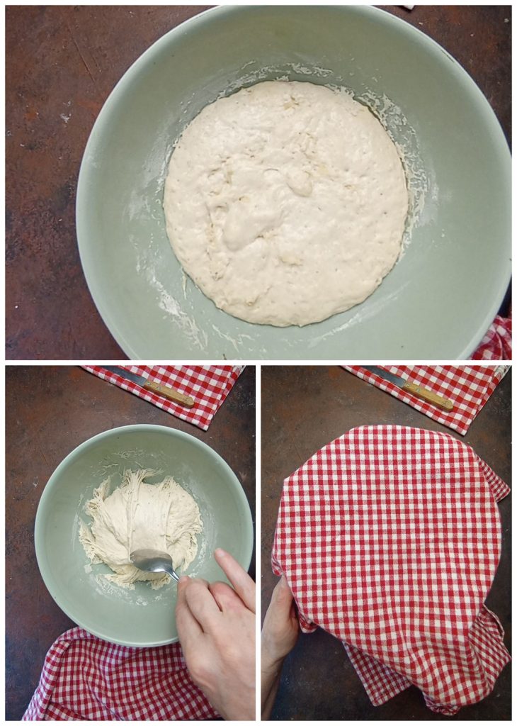 Dejamos leudar por al menos 2 horas y media en un lugar protegido de las fuentes de luz y aire.