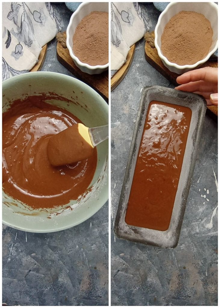 • Una vez obtenida una masa lisa y homogénea, la vertimos en el molde para plumcake ligeramente engrasado y enharinado, nivelándola con la ayuda de una espátula.