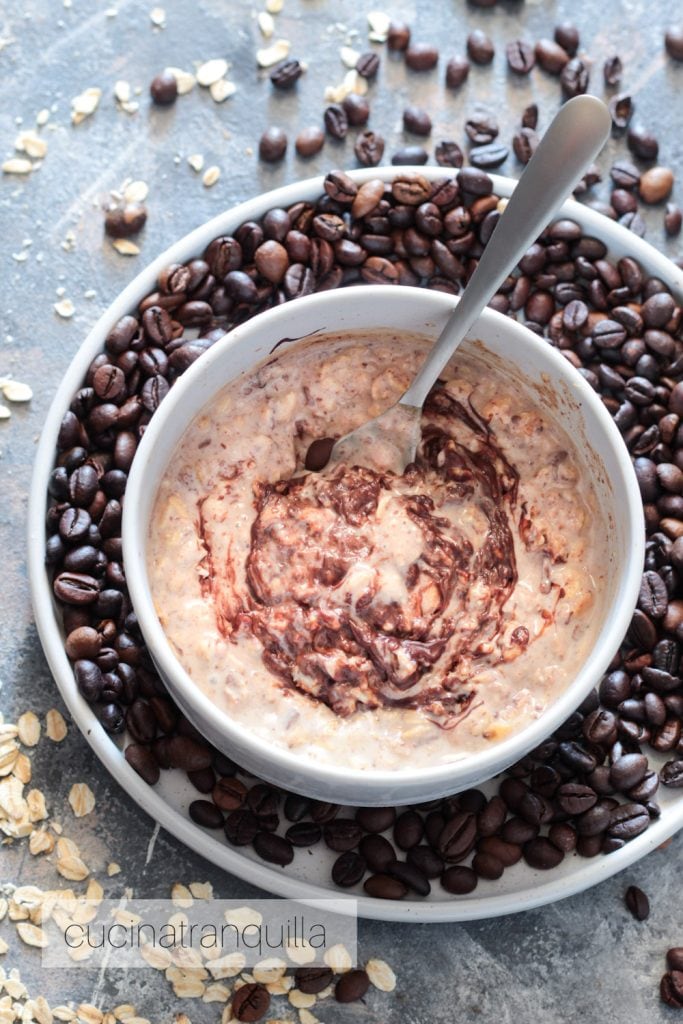 Porridge overnight con yogur al café fresco y buenísimo, una receta sencilla y rápida para una receta llena de sabor, perfecta para preparar el día anterior y disfrutar en el desayuno.