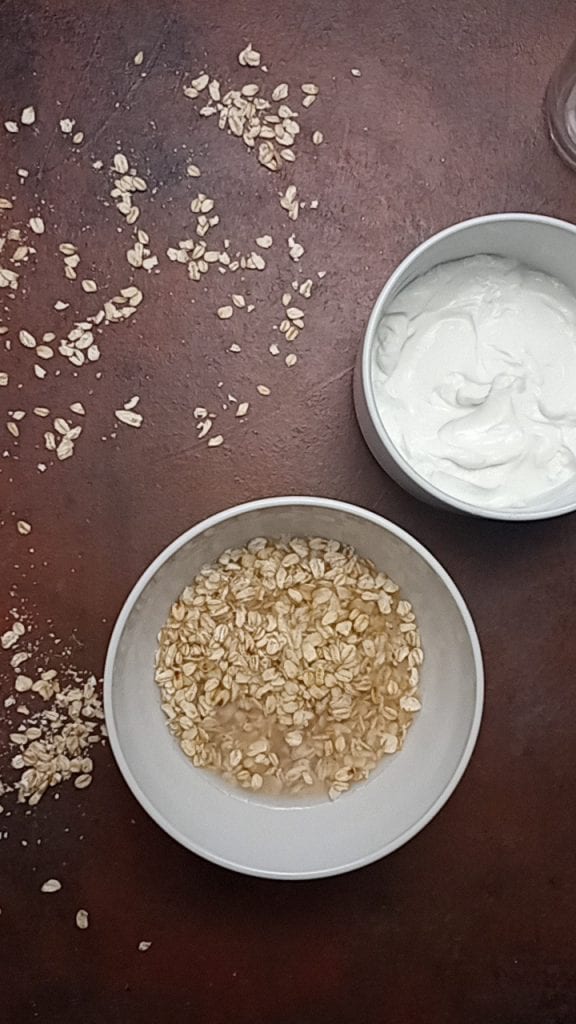 • Ponemos los copos de avena en un cuenco y vertemos el agua.